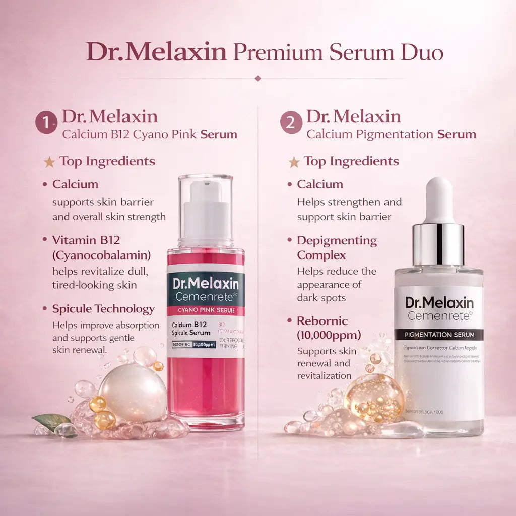 Two lightweight serums designed to work together — one to hydrate and energize the skin, the other to help improve uneven tone and dark spots. Together, they prepare your skin for a smoother, more balanced look.